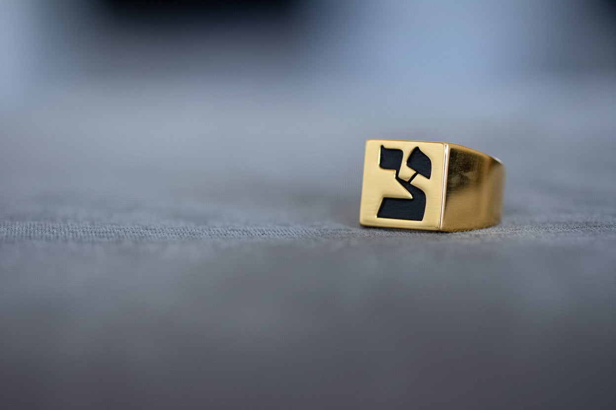 Hebrew Letter KHAF Signet Ring טבעת חותם האות כ"ף