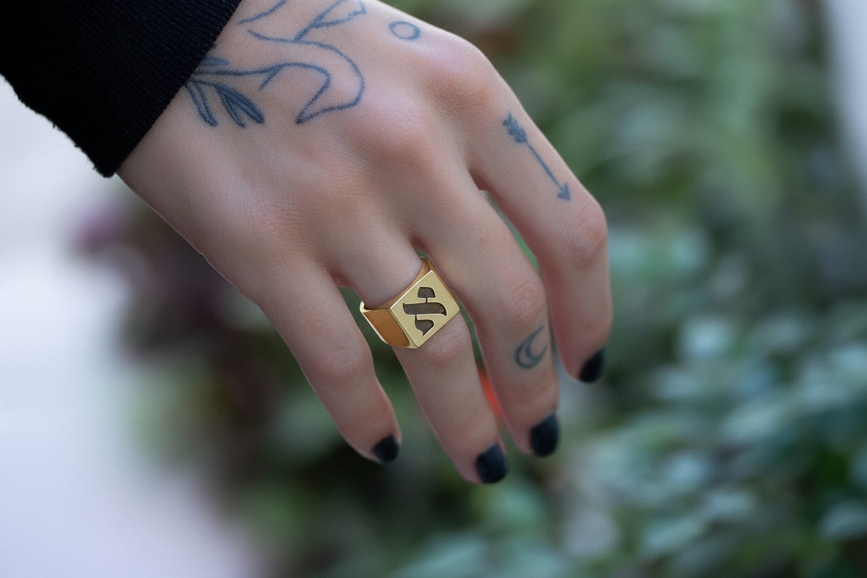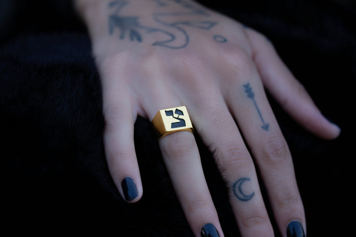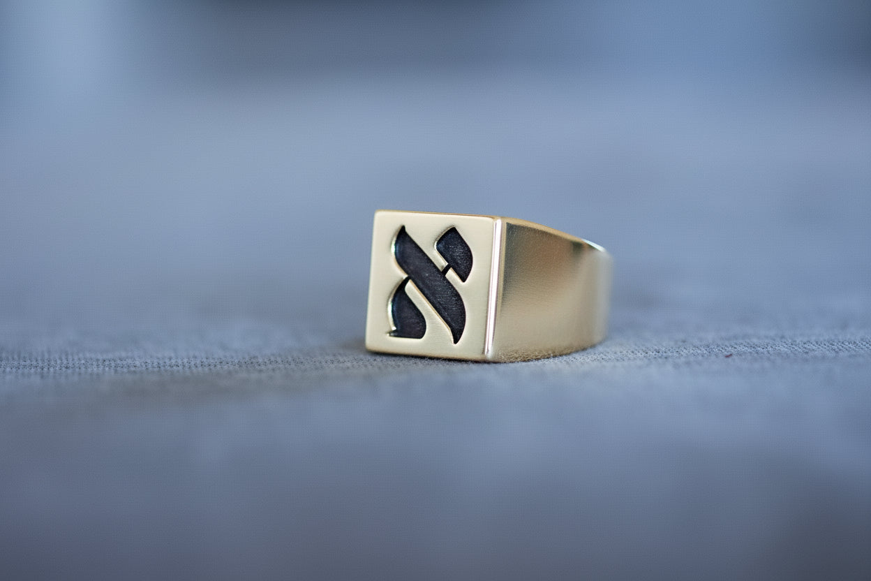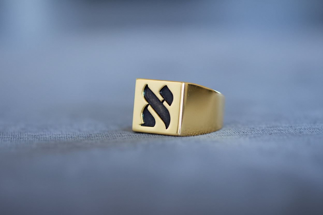 Hebrew Letter NOON Signet Ring טבעת חותם האות נו"ן