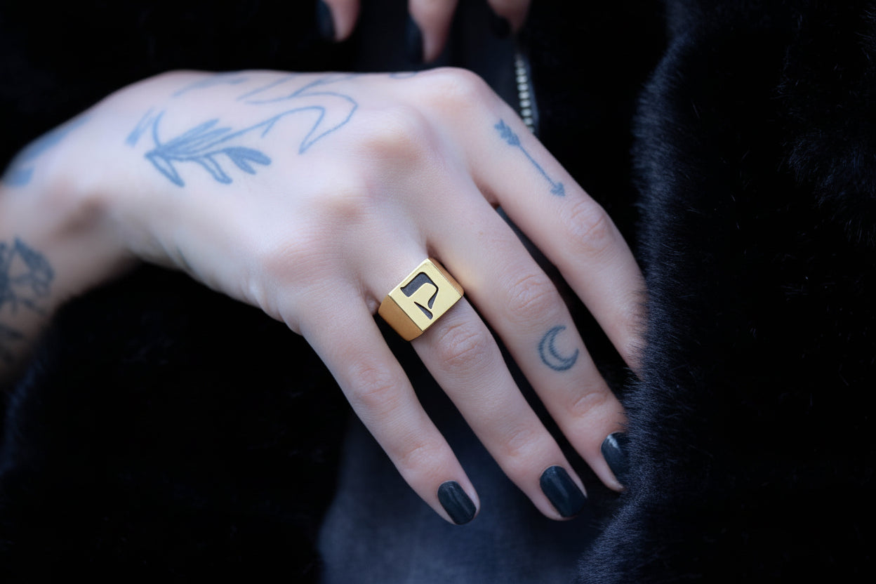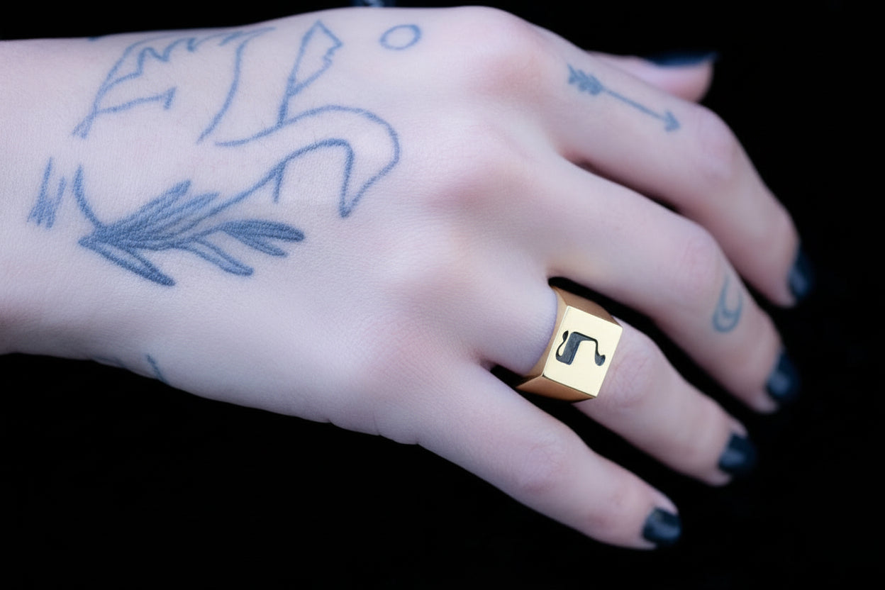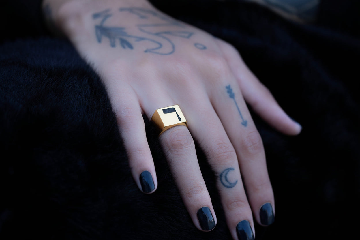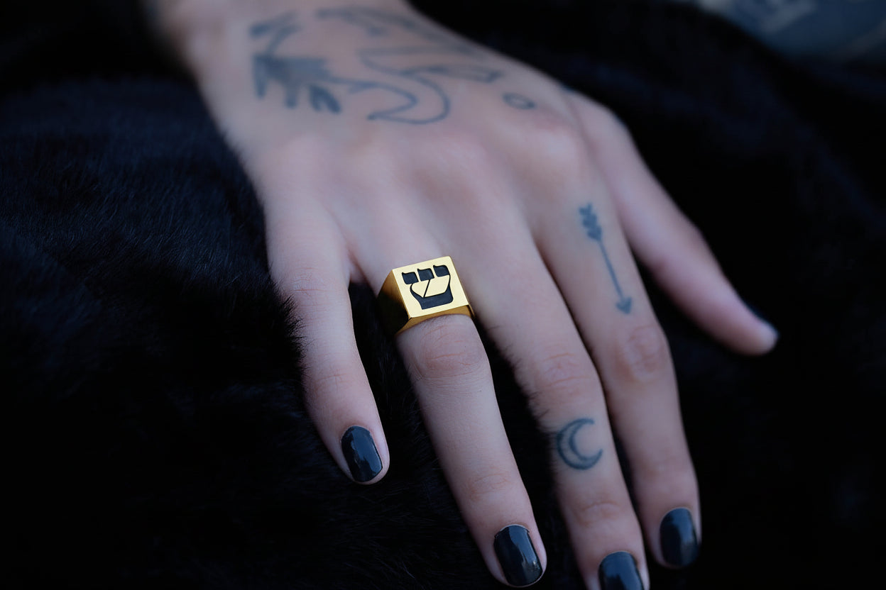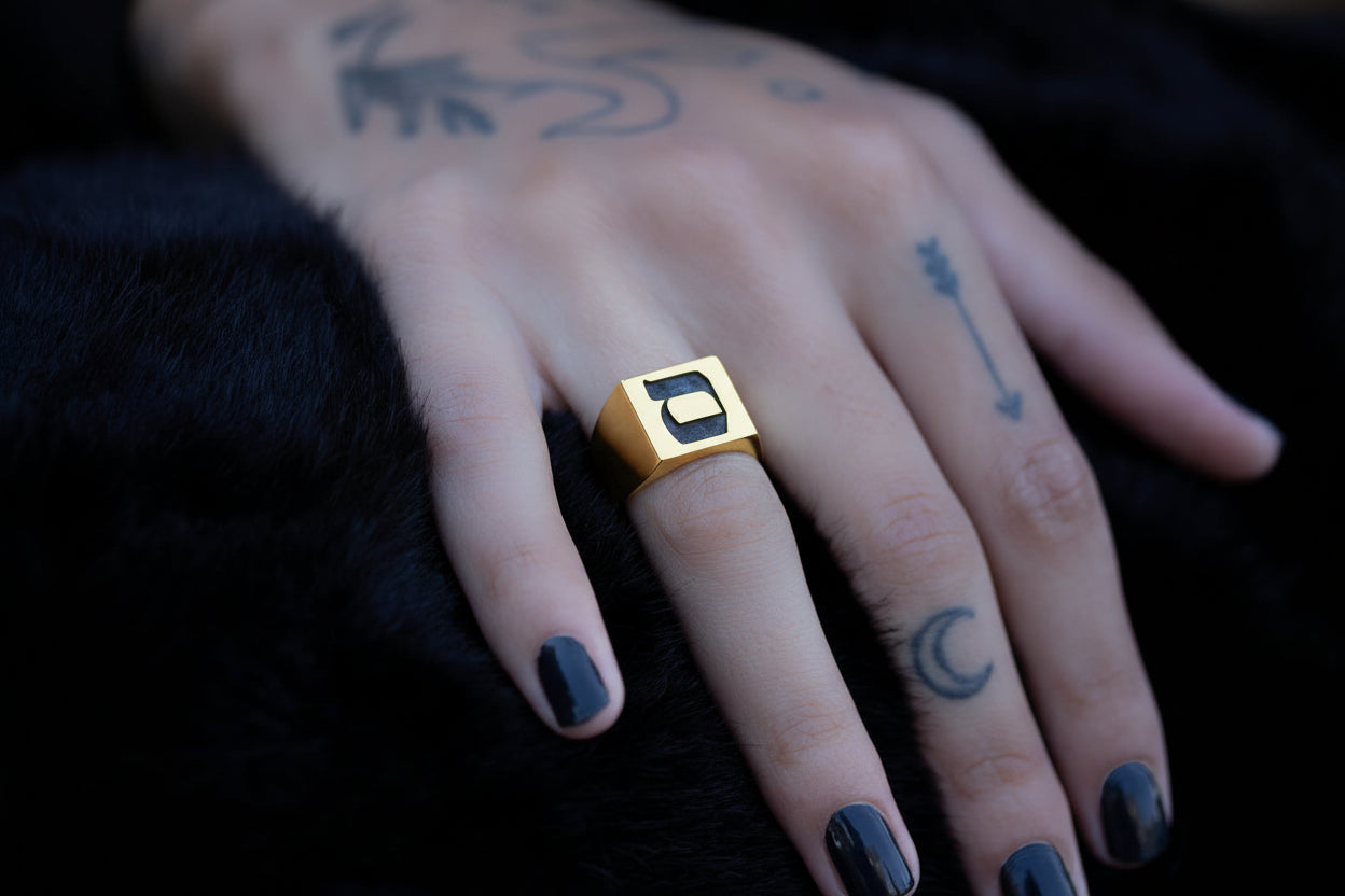 Hebrew Letter NOON Signet Ring טבעת חותם האות נו"ן