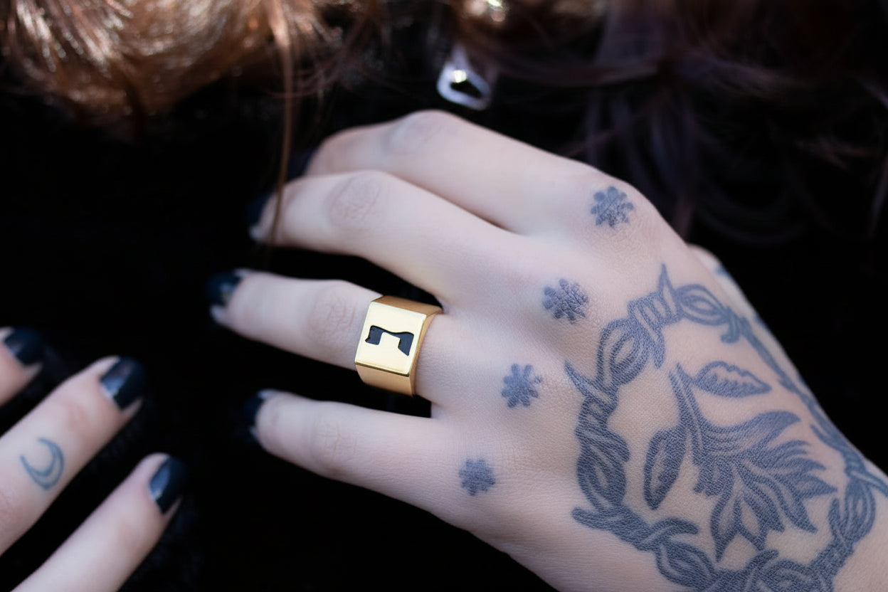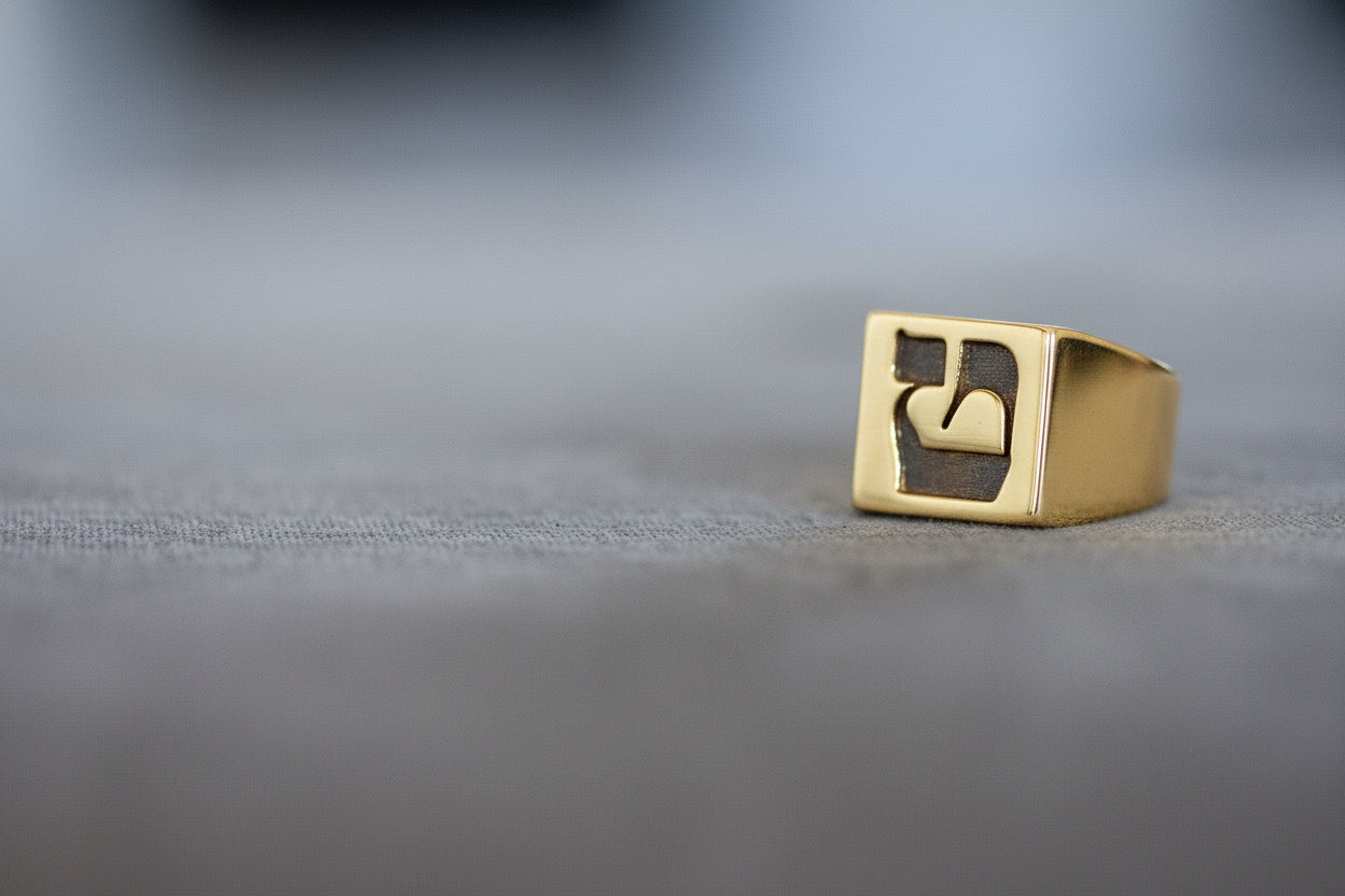 Hebrew Letter MEM Signet Ring טבעת חותם האות מ"ם