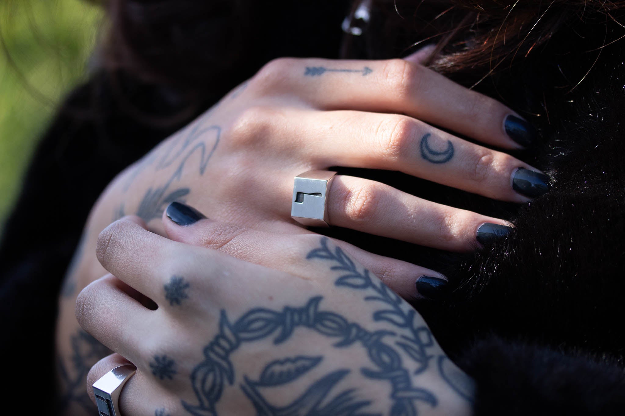 Spike Ring with Black Enamel