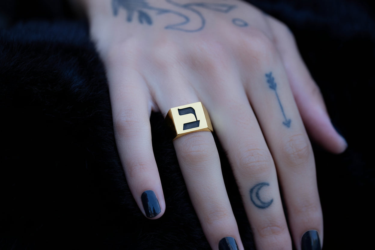 Hebrew Letter BET Signet Ring טבעת חותם האות בי"ת
