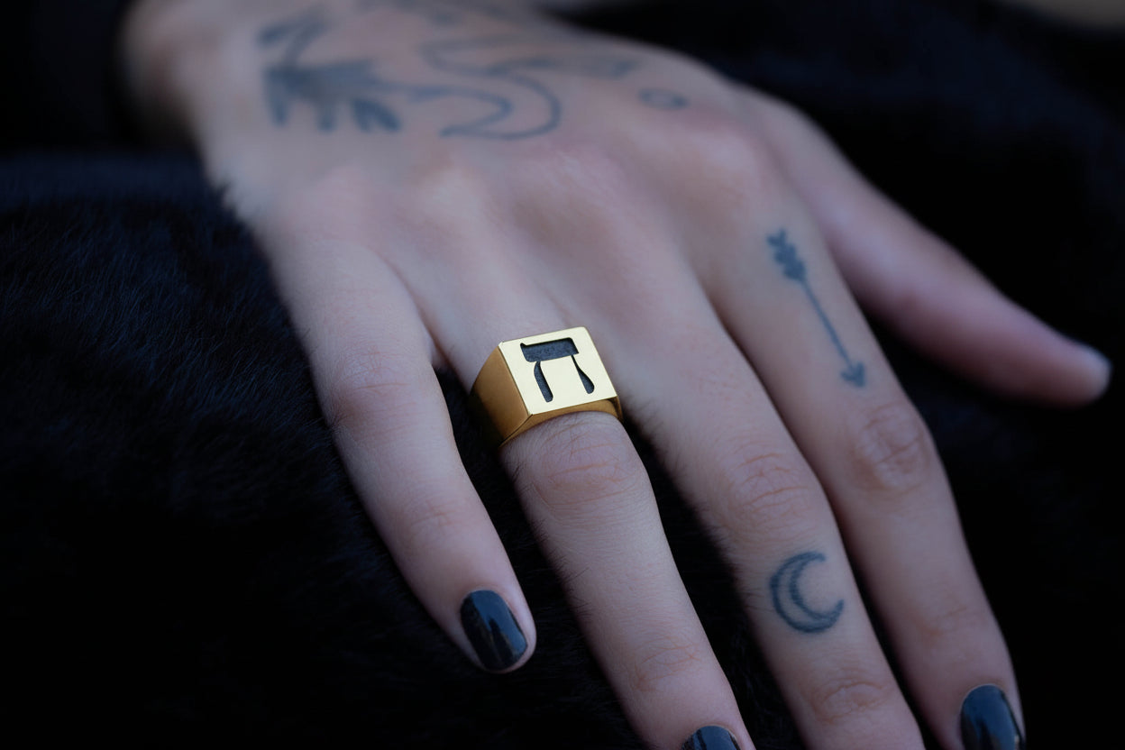 Hebrew Letter HET Signet Ring טבעת חותם האות חי"ת