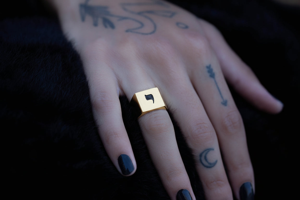 Hebrew Letter PEY Signet Ring טבעת חותם האות פ"א